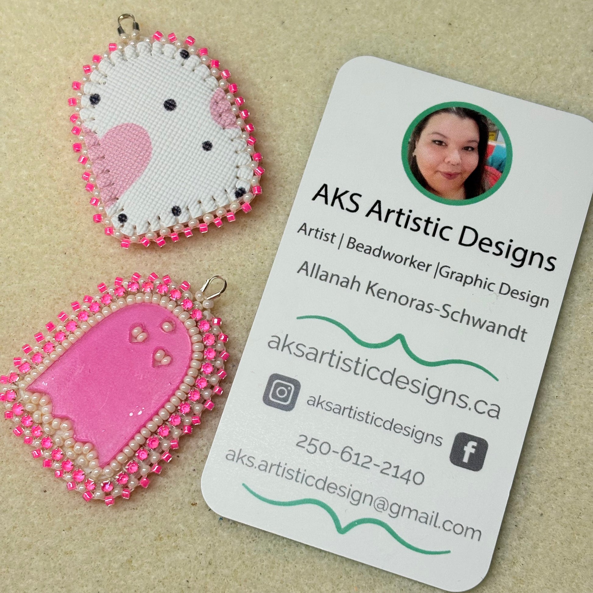 These sweet pink ghost earrings are light weight with 11/0 beads, metal banding and more 11/0 for edging.